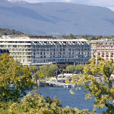 Fairmont Grand hotel Geneva, a luxury 5-star hotel, enjoys a privileged location on Lake Geneva's shore, offering stunning views of the Jet d'Eau fountain, Mont Blanc, and the French Alps. This modern luxurious staycation option is ideally situated overlooking the Alps, Mont-Blanc, and Old Town, providing guests with a unique experience suitable for family, friends, or business trips.